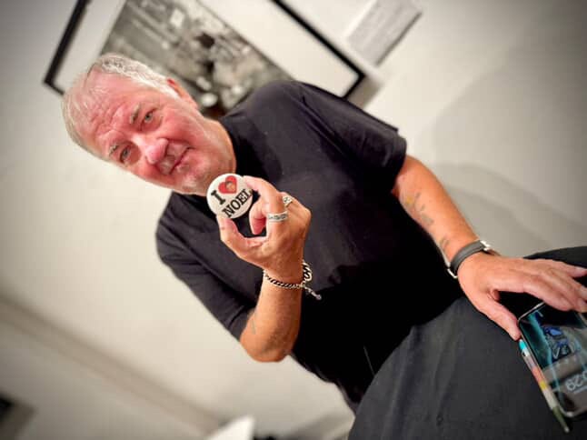 We went to Amoeba where Oasis displays filled the store. From there we walked to Musichead Gallery, which held the photography exhibit Be Here Now featuring Kevin Cummins’ work. Meeting Kevin was surreal. He told me about taking his daughter to her first Oasis show in the nineties and complimented my handmade pins. I gave him one that said “I heart Noel.” It felt like a passing of history from one generation of fans to another. The gallery was filled with people who until then I had only known online from various Oasis pages. We traded Oasis lore, quoted interviews, and understood every reference without explanation. It was less like meeting strangers and more like coming home to a community.