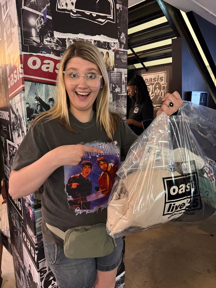 In any other setting, these shirts might have drawn confused looks. But in this space, they sparked recognition and connection. Fans came up quoting the lines, asking for photos, and laughing like we were sharing an inside joke. It was a reminder of how Oasis culture lives through moments like these, little pieces of history that bond strangers instantly.