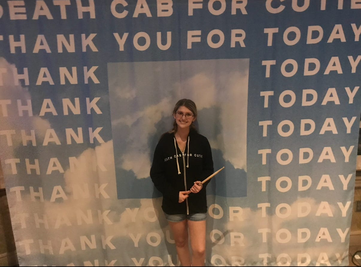 By 2018, I was in technical college studying graphic design and finally felt capable again. I loved creating and found something I was good at. My professor encouraged me to apply to university, and I got into Stetson. In those classes we could listen to music while working, and that is when I discovered Death Cab for Cutie. I had heard their singles before, but when I found out they were coming to town, I decided to go. I used my special interest powers to listen to every song before the show. By the time I stood in the pit talking to superfans, you would have thought I had been one my entire life. That night changed me. Ben Gibbard’s voice felt like a hug to my nervous system. When I was anxious or overstimulated, I would put Death Cab on and it was like the noise inside my brain paused.